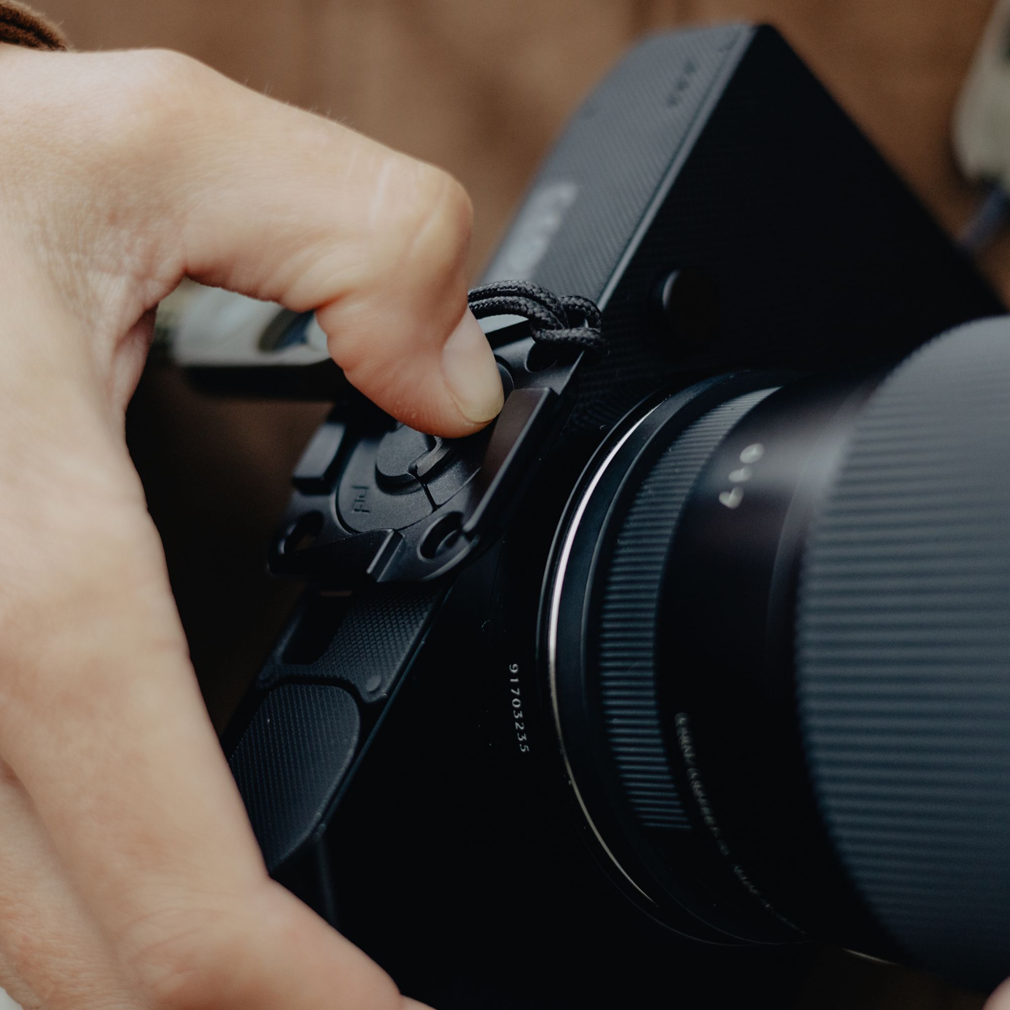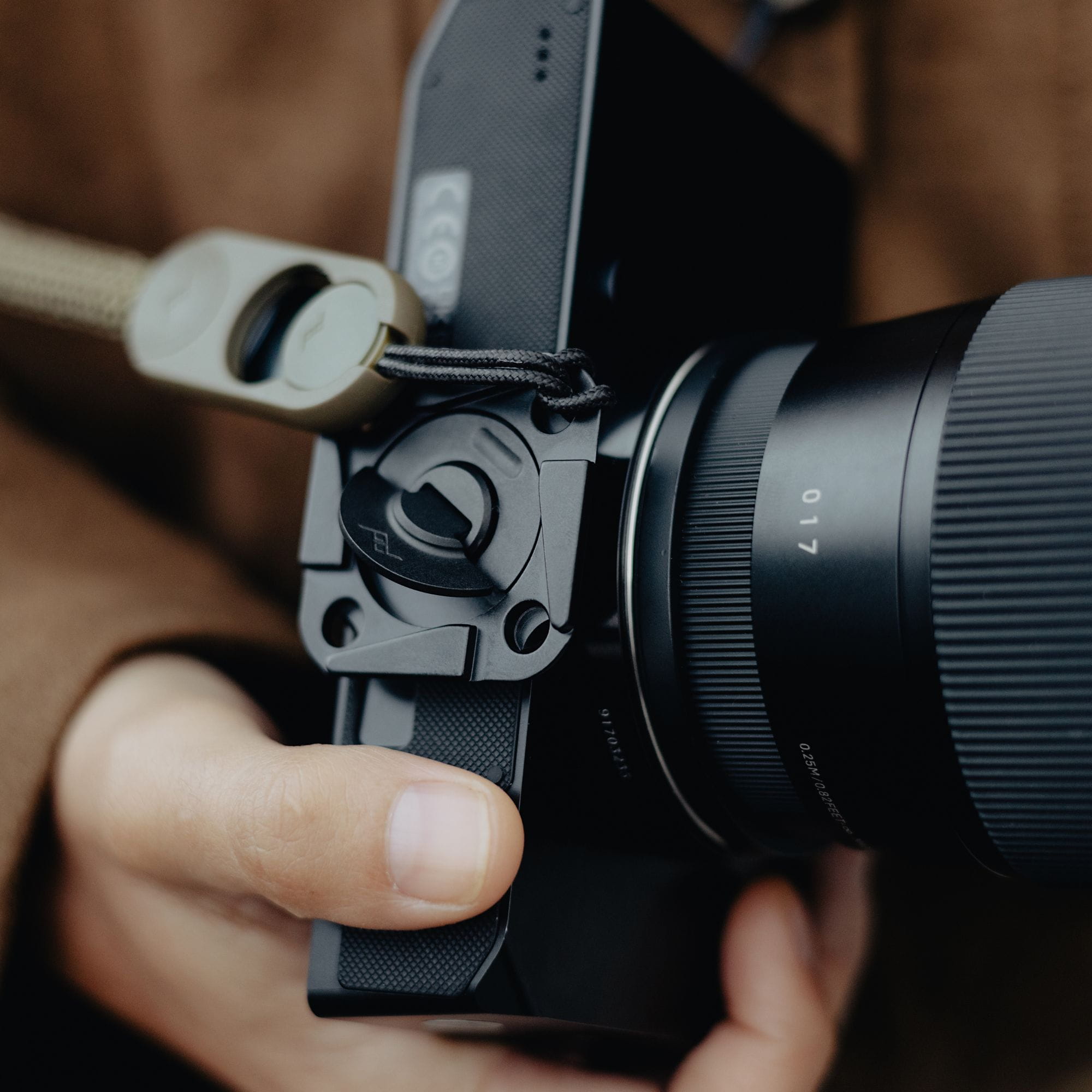 Kennst du das: Kamera am Stativ, dann erstmal nach dem Innensechskantschlüssel suchen – das ist mit der Field Plate vorbei. Stattdessen drückst du einfach den Knopf, hebst die kleinen Platten des Schraubmechanismus an und kannst die Platte ohne Schraubenschlüssel festschrauben. Kein Gefrickel oder Sucherei nach dem richtigen Schlüssel mehr - dafür eine perfekt festgezogene Platte. Ideal für Fotograf:innen, die schnell zwischen Hand‑ und Stativbetrieb wechseln.