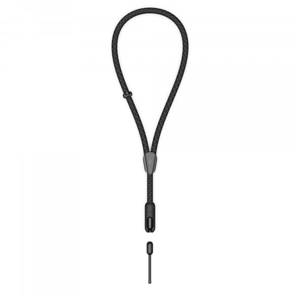 Das speziell entwickelte Seil kombiniert Nylon und Polyester in einer robusten Korbflechtstruktur. Diese Konstruktion sorgt für die optimale Balance aus Stabilität, Polsterung und leichtem Stretch. Sollte Dir Dein Gerät einmal aus der Hand rutschen, zieht sich die Schlaufe automatisch am Handgelenk fest und verhindert ein Herunterfallen. Ein eleganter Aluminium-Stopper erlaubt es Dir außerdem, die minimale Schlaufenlänge individuell einzustellen.