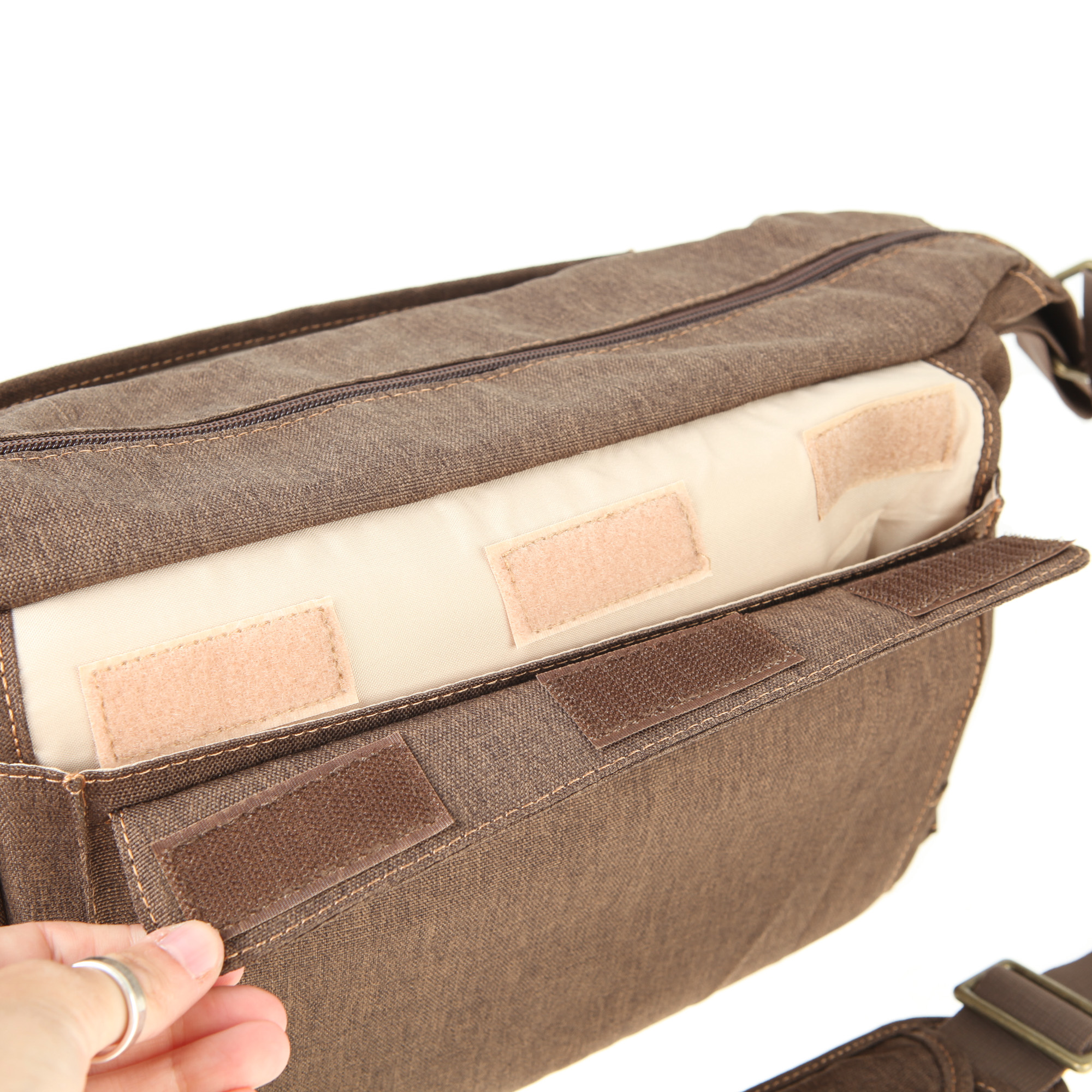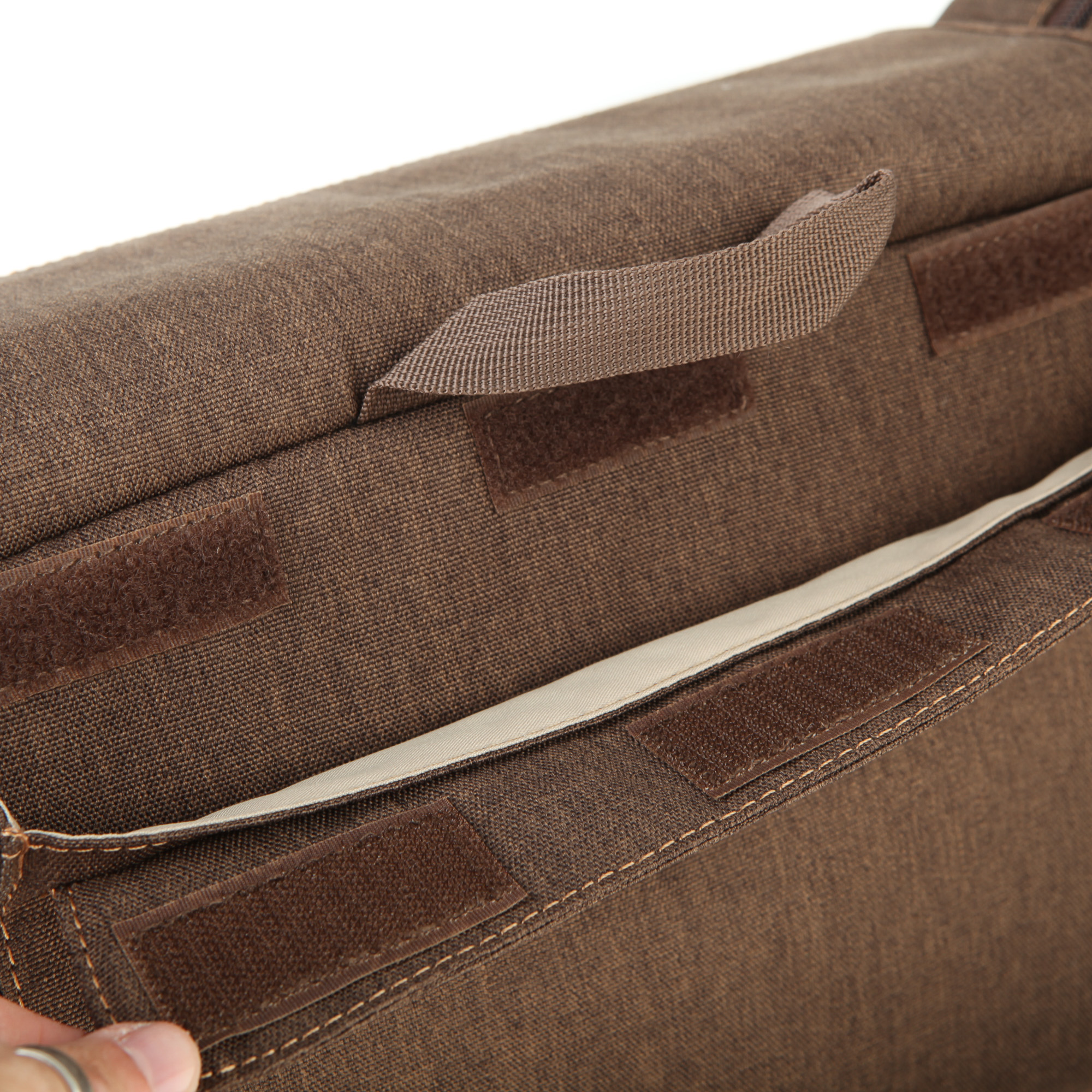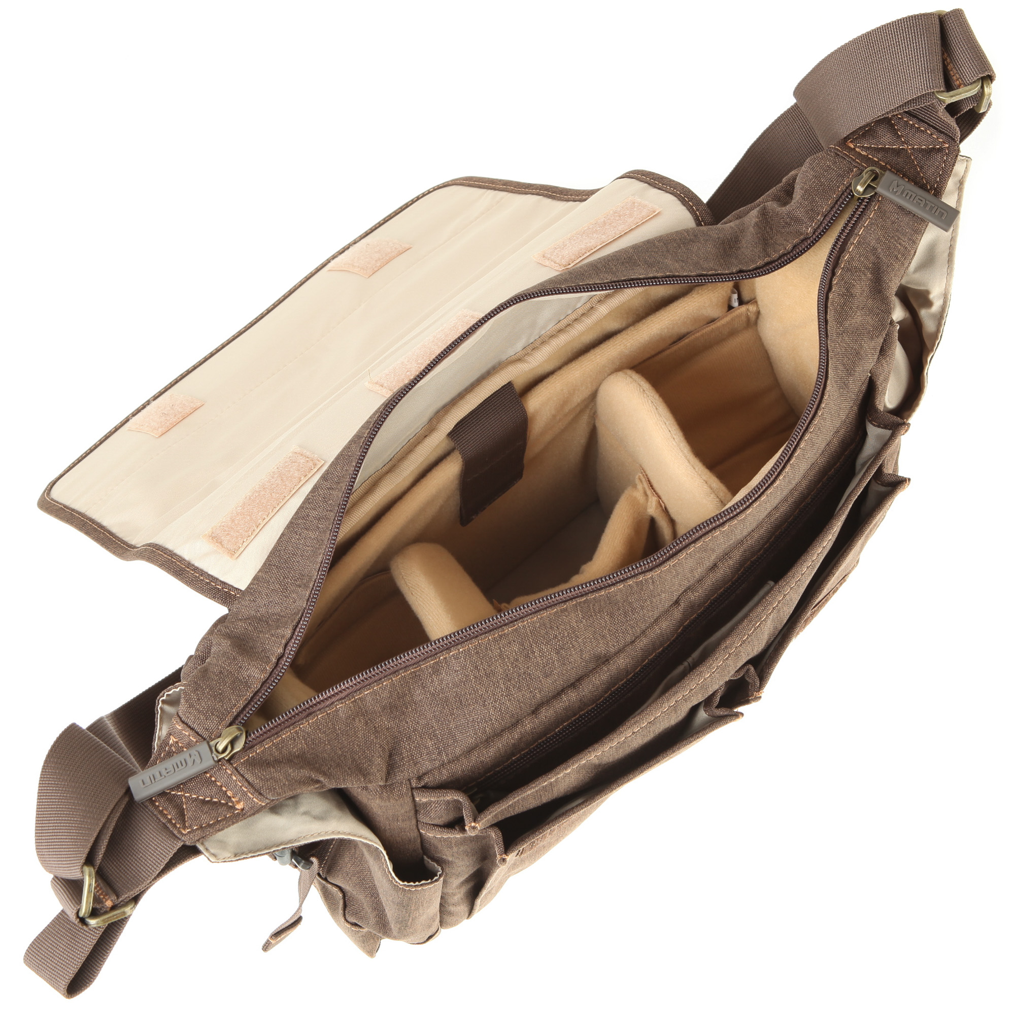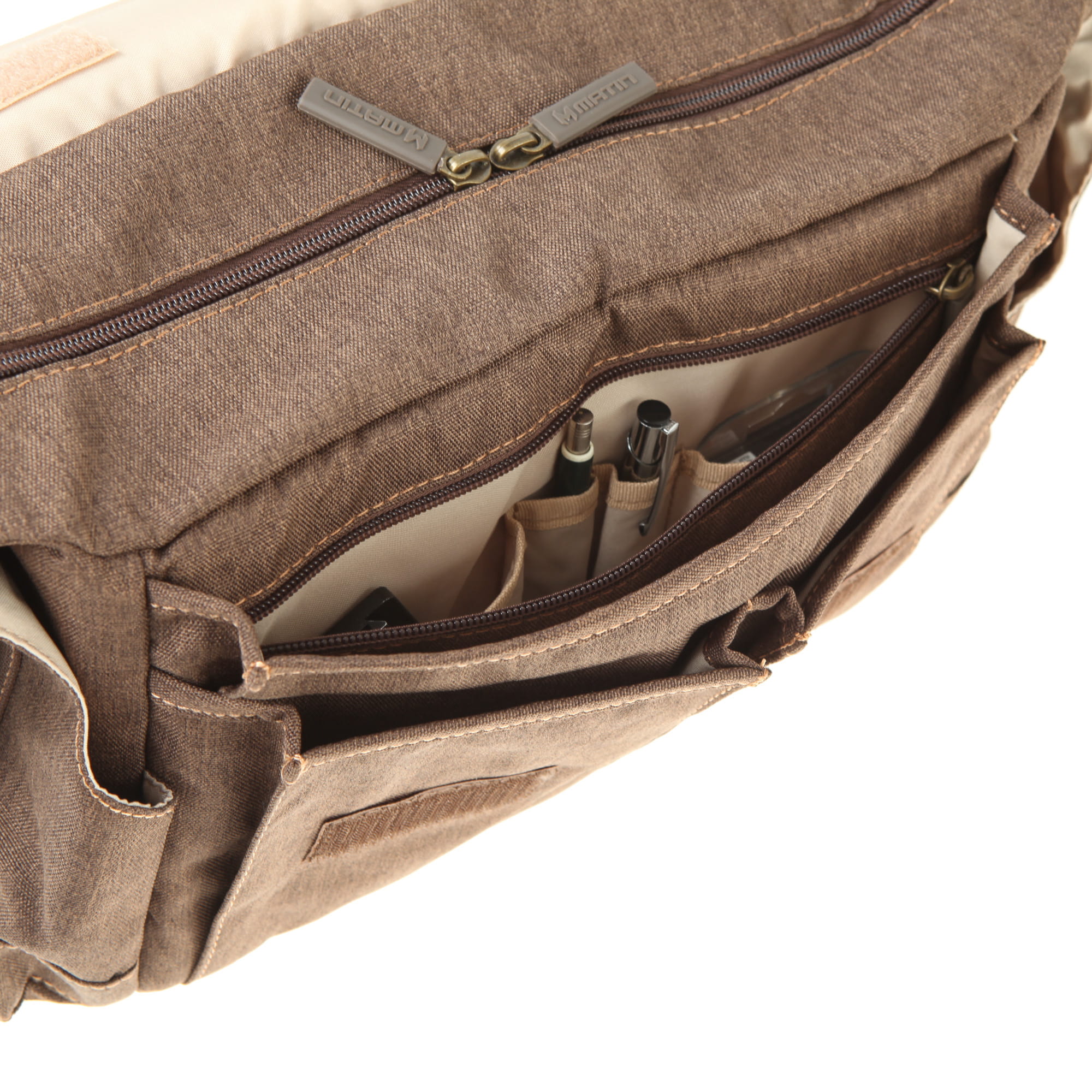 Das Hauptfach ist mit fünf versetzbaren Inneneinteilern ausgestattet. Die Inneneinteiler sind per Klett befestigt. Mit ihrer Hilfe kann man das Fach seinen individuellen Bedürfnissen entsprechend anpassen. Man kann die Inneneinteiler aber auch ganz weglassen.