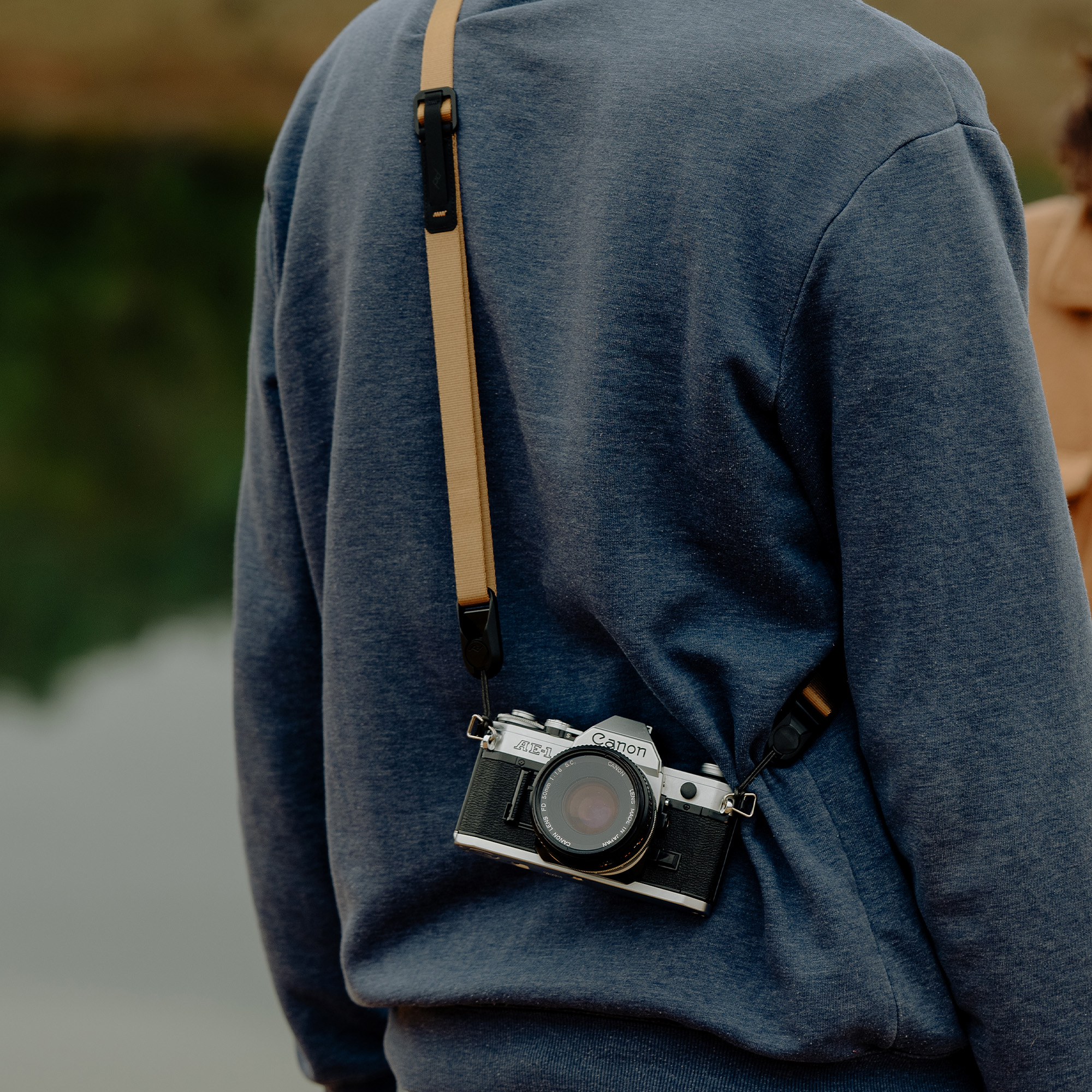 Doch nicht nur in den Details kann der Leash punkten. Auch in Sachen Tragestil ist er ein echter Allrounder. Du kannst den Leash als Nackengurt, als Schultergurt oder als Slinggurt verwenden. Den höchsten Komfort bietet die Slinggurt-Variante: Als Slinggurt verläuft er diagonal um deinen Oberkörper und die Kamera hängt leicht seitlich. Oft die beste Position, um sofort schussbereit zu sein! Und dank seines sehr glatten Materials gleitet der Leash dabei sanft und ruckelfrei an der Kleidung entlang.