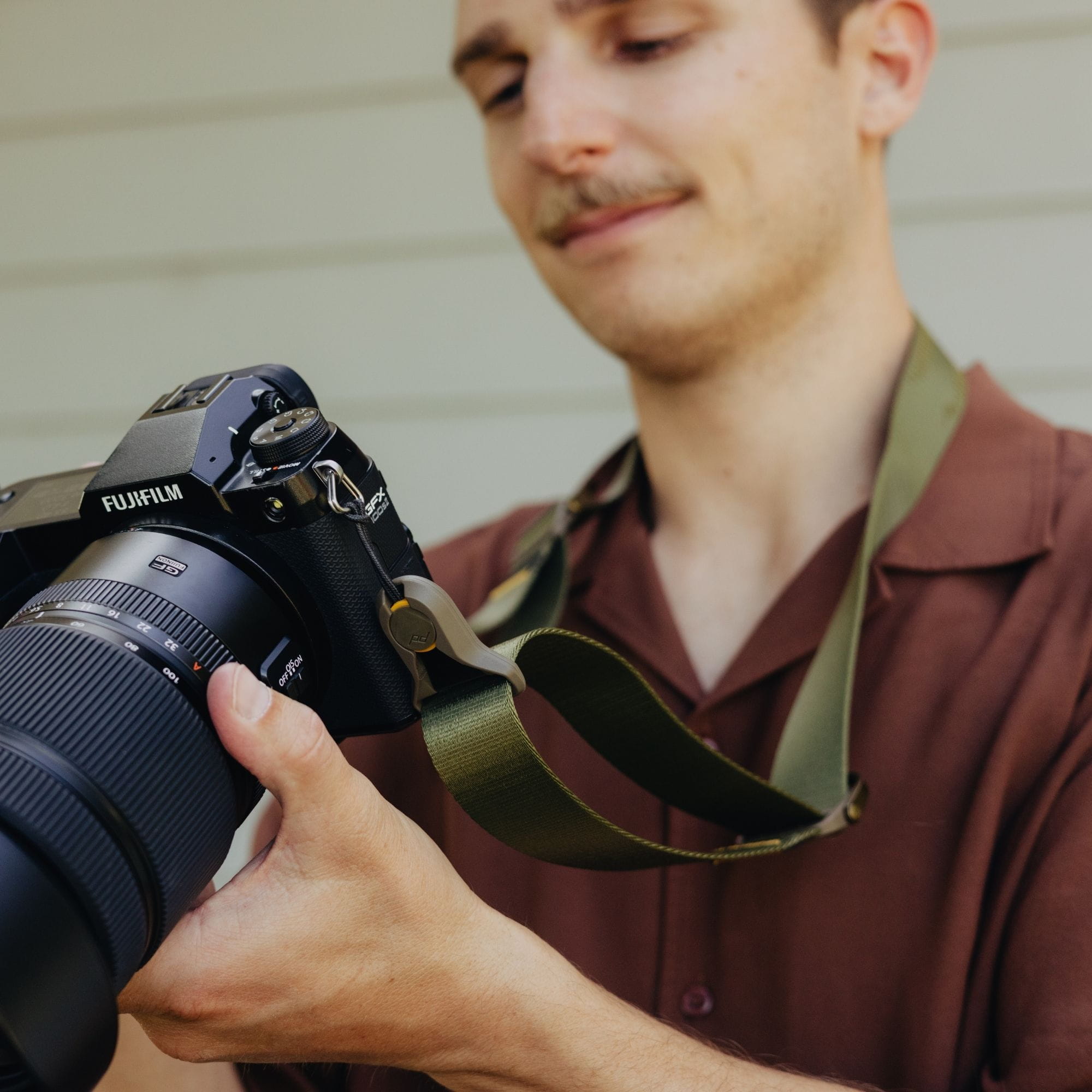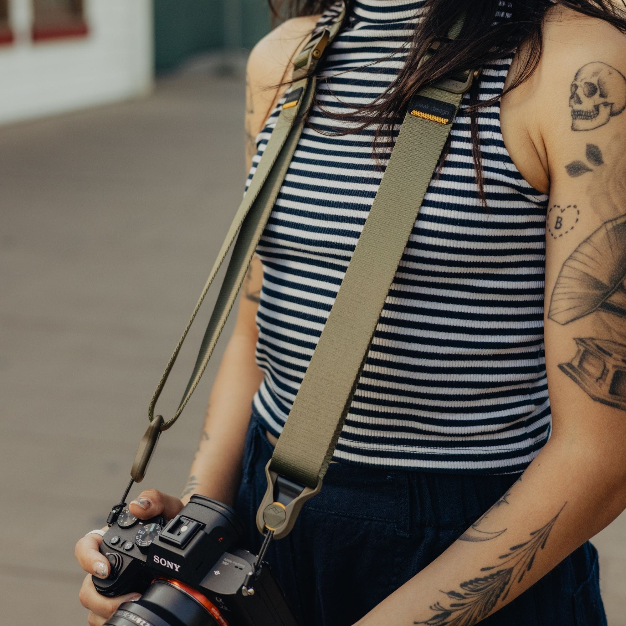 Der Slide Lite ist eine schmalere Variante des Slide - ebenso vielseitig und perfekt für kleine DSLRs oder größere DSLM-Kameras wie die Sony-a7-Serie. Du kannst ihn als Schulter-, Nacken- oder Slinggurt tragen.