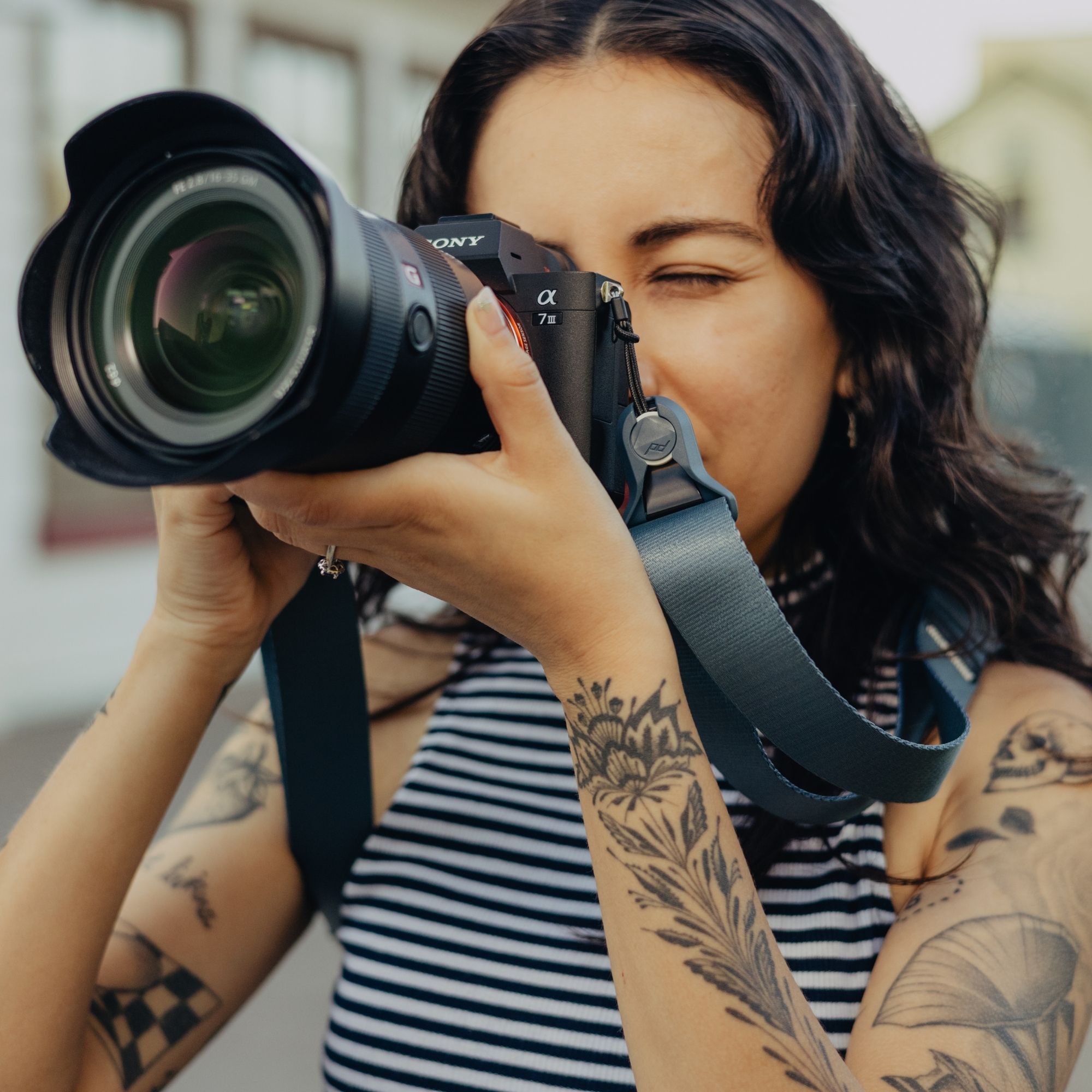 Der Slide Lite ist eine schmalere Variante des Slide - ebenso vielseitig und perfekt für kleine DSLRs oder größere DSLM-Kameras wie die Sony-a7-Serie. Du kannst ihn als Schulter-, Nacken- oder Slinggurt tragen.