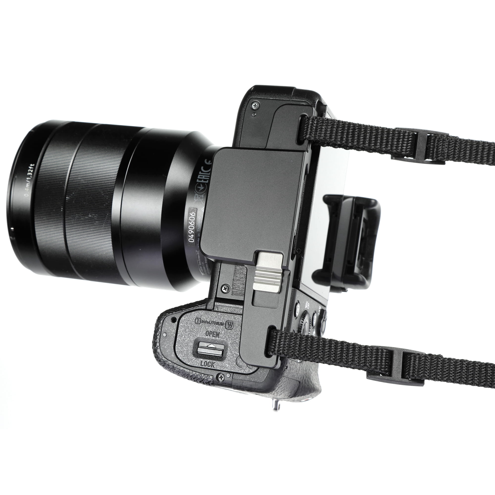 Kamera, Stativ und Tragegurt - ganz neu verbunden! Ösen oder Gurtschlaufen sind mit SWIFT-LOCK nicht mehr nötig, da eine neuartige Arca-Schnellwechselplatte die Verbindung zur Basisplatte mit Gurtanschluss übernimmt. Das ersetzt nicht nur seitliche Trageschlaufen, sondern auch die Arca-Platte fürs Stativ. Um die Kamera am Gurt zu tragen, musst du sie nur an der Basisplatte einklinken. Dort sind klassische Gurtösen eingearbeitet, die für traditionelle Gurtbefestigungen oder Anchor Links benutzt werden können.