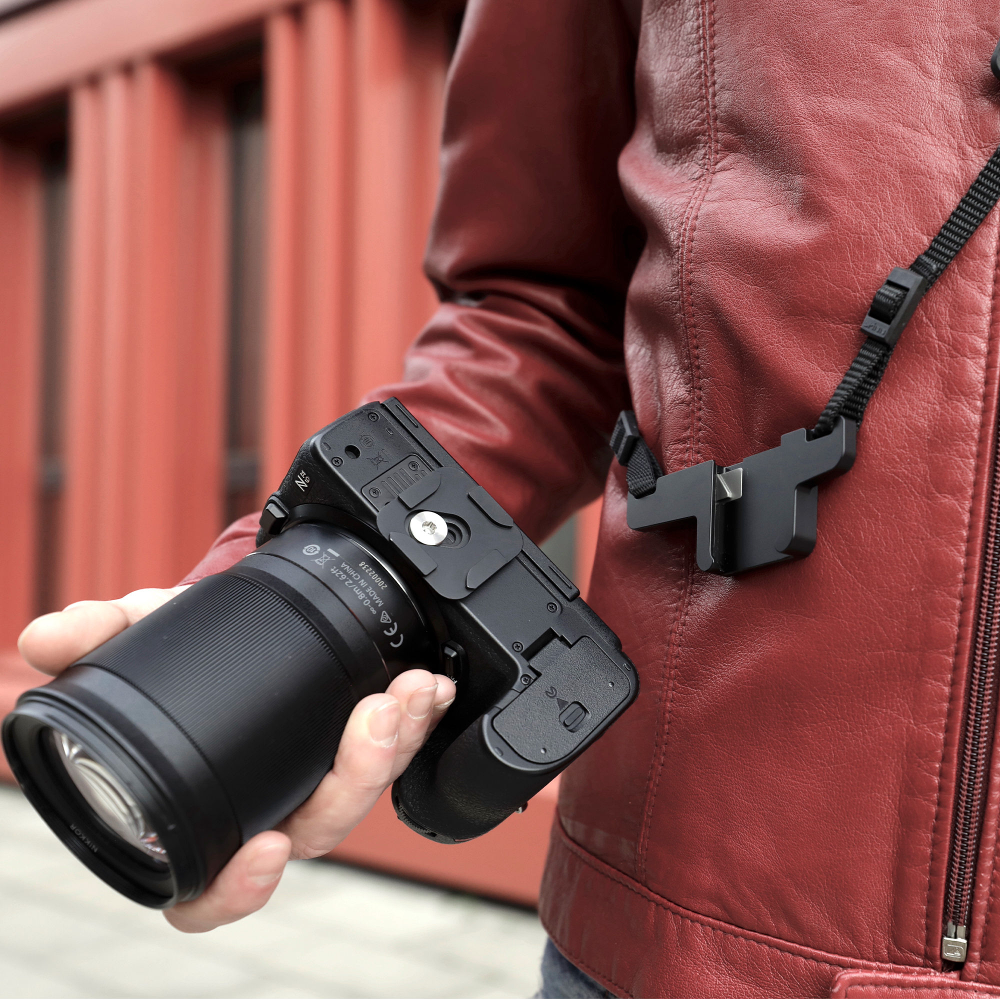 Tragesystem mit magnetischer Arca-Kupplung: Einfach umswitchen, ohne Extra-Platte fürs Stativ. Macht Kamera-Handling leichter, schneller, bequemer und SWIFT-LOCK zum Gamechanger beim Fotografieren!