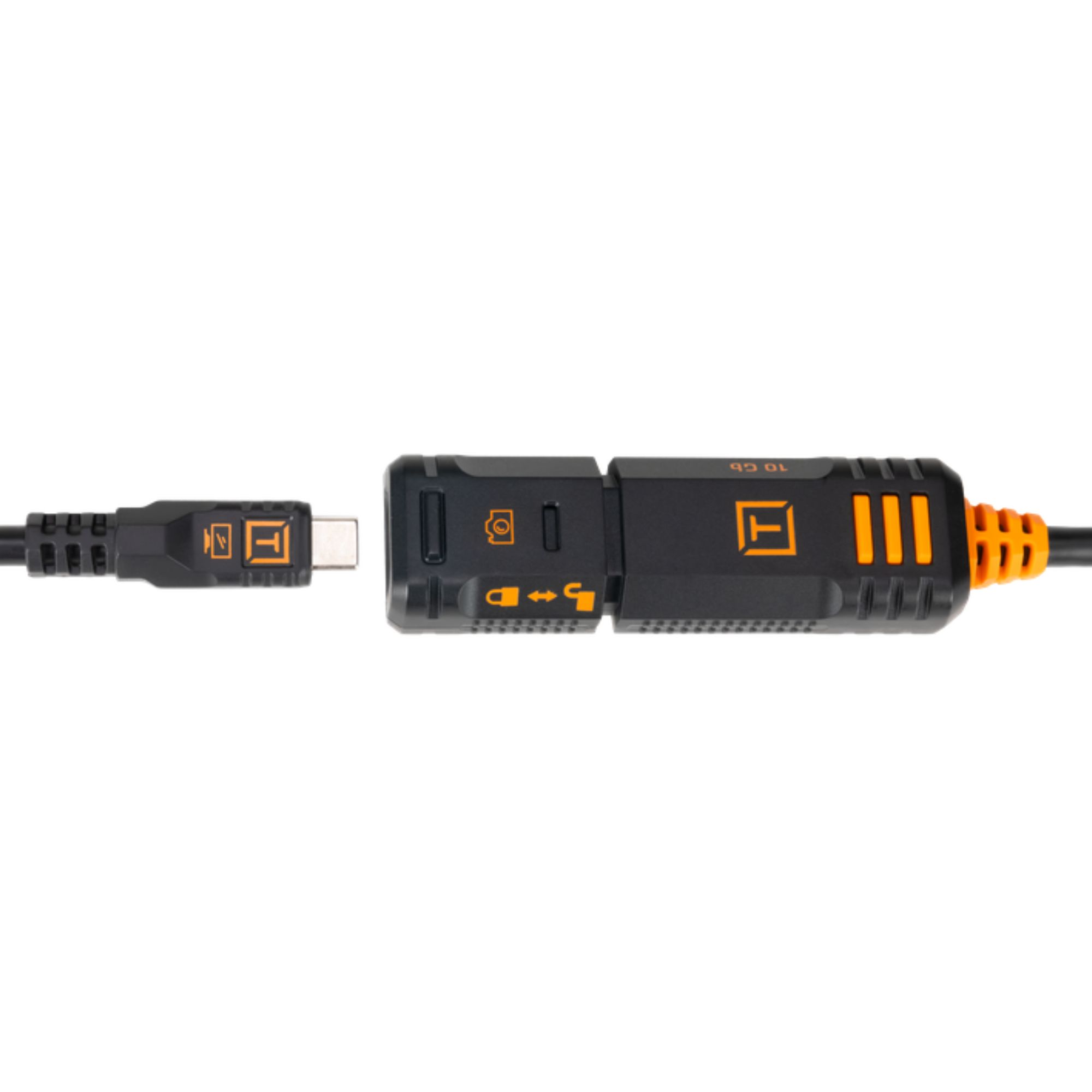 Transferiere Bilddateien über lange Distanzen schneller und zuverlässiger als je zuvor mit TetherPro Optima 10G. Die integrierten SecureLock-Verriegelung verhindert versehentliche Trennung.